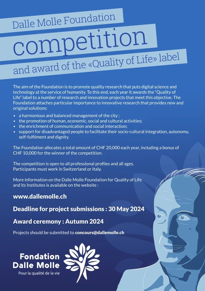 The Dalle Molle Award for the Quality of Life Label is an annual competition recognizing innovative projects aimed at improving quality of life. Organized by the Dalle Molle Foundation, the award is judged by a panel of 4 to 7 members from scientific, journalistic, and cultural backgrounds. Projects are evaluated based on innovation, originality, adherence to ethical principles, and impact on quality of life. More information about the award is available on the foundation’s website.